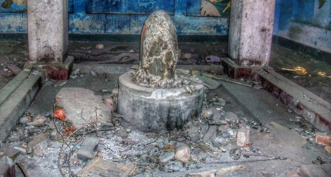 Once, people came here to pray. Now, grass grows through the floors where devotees once sat.